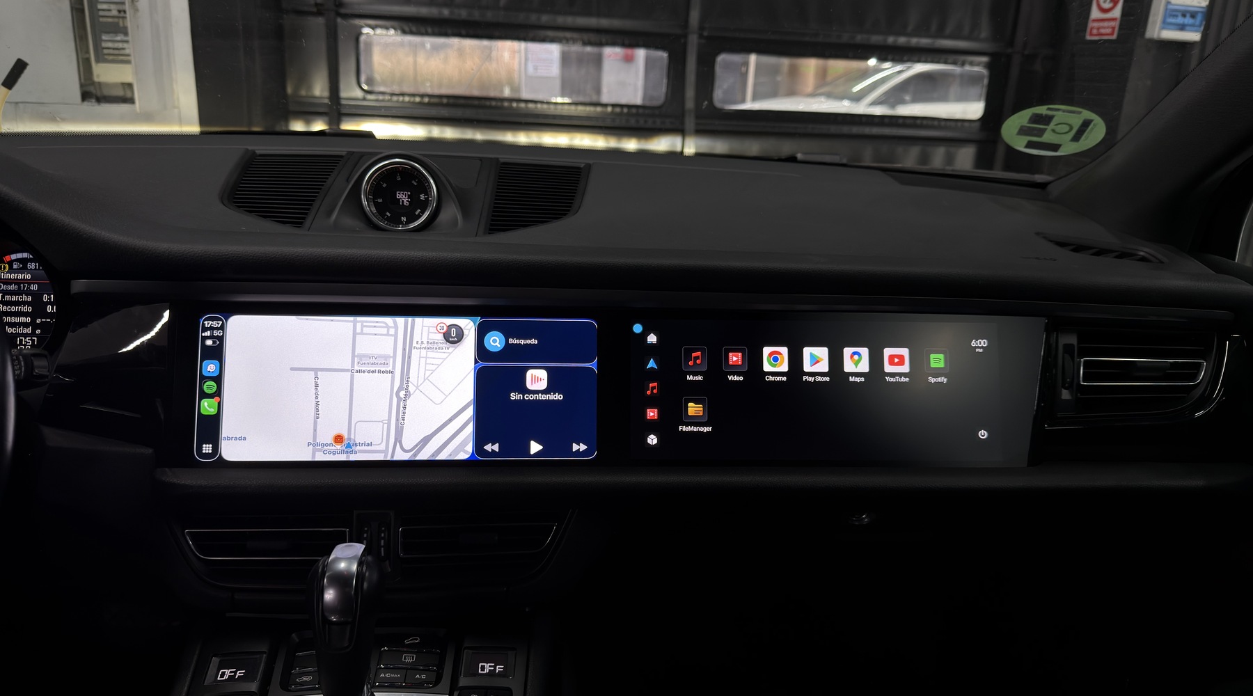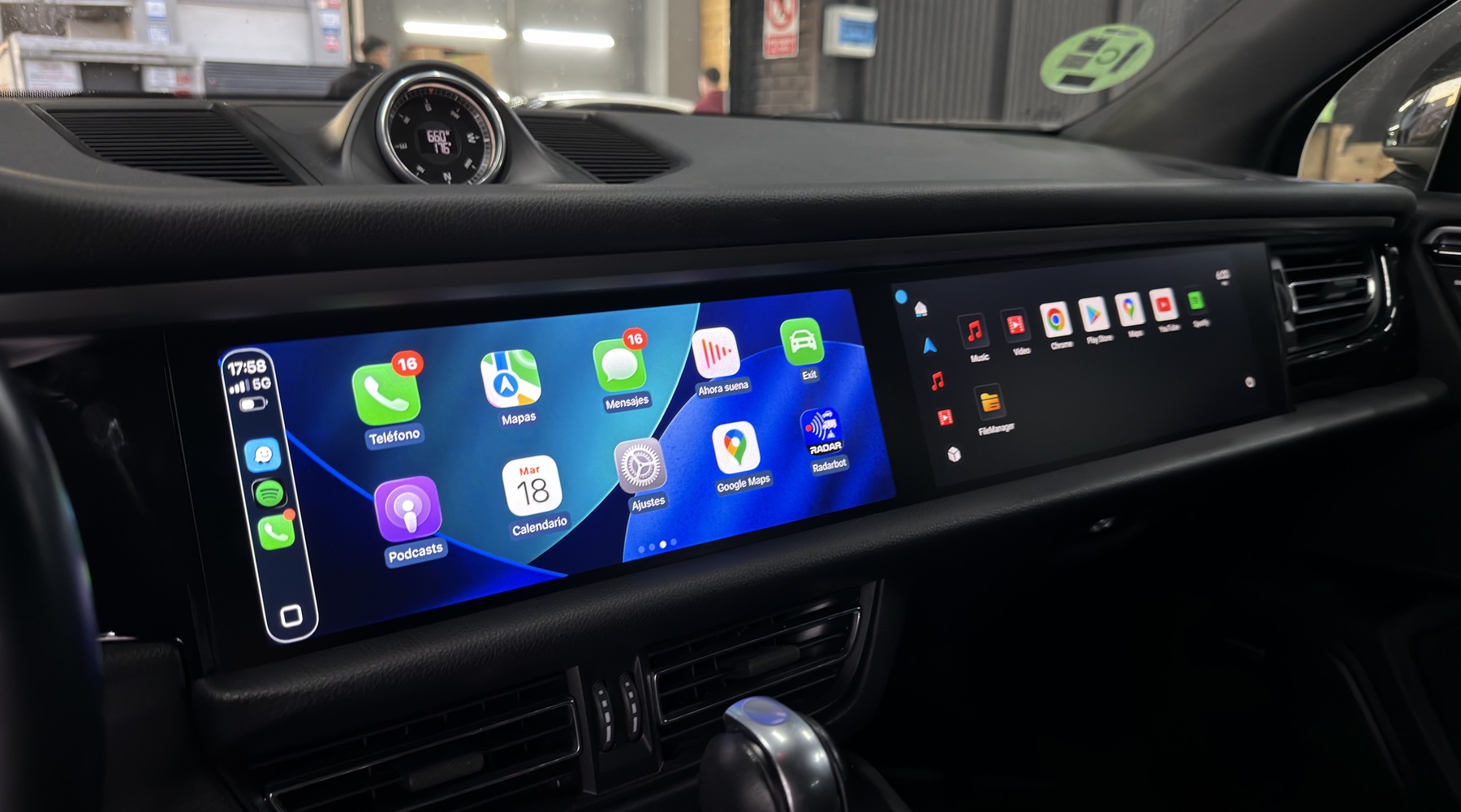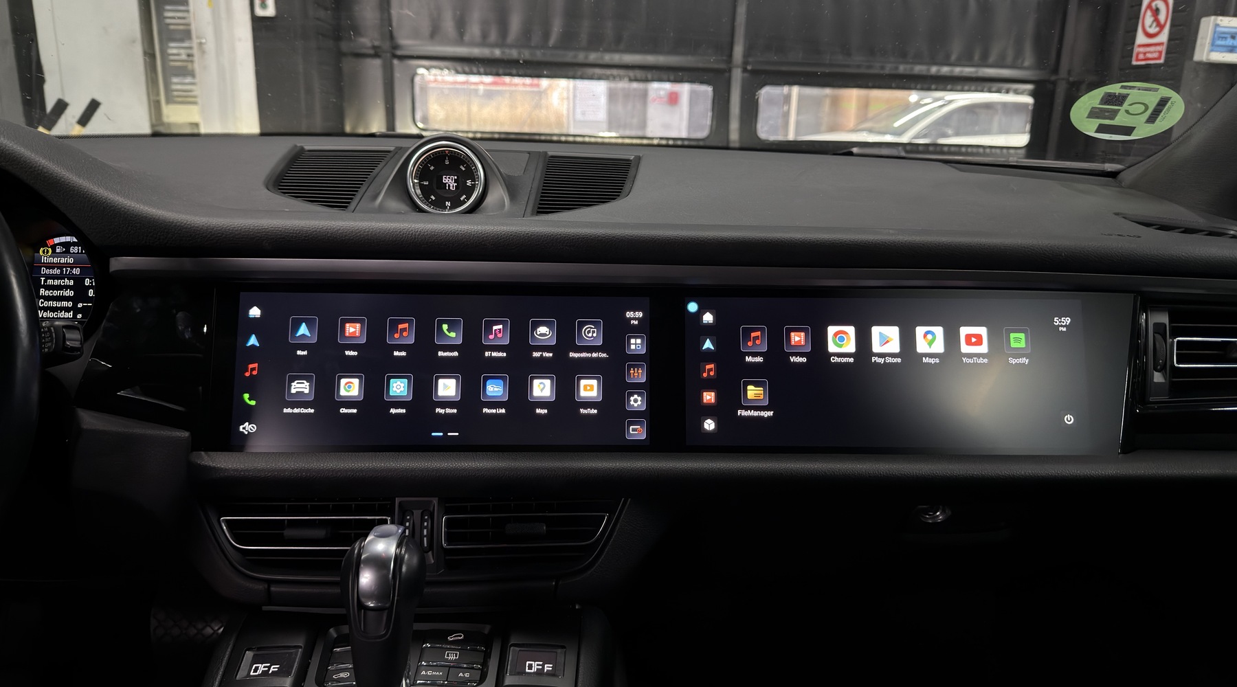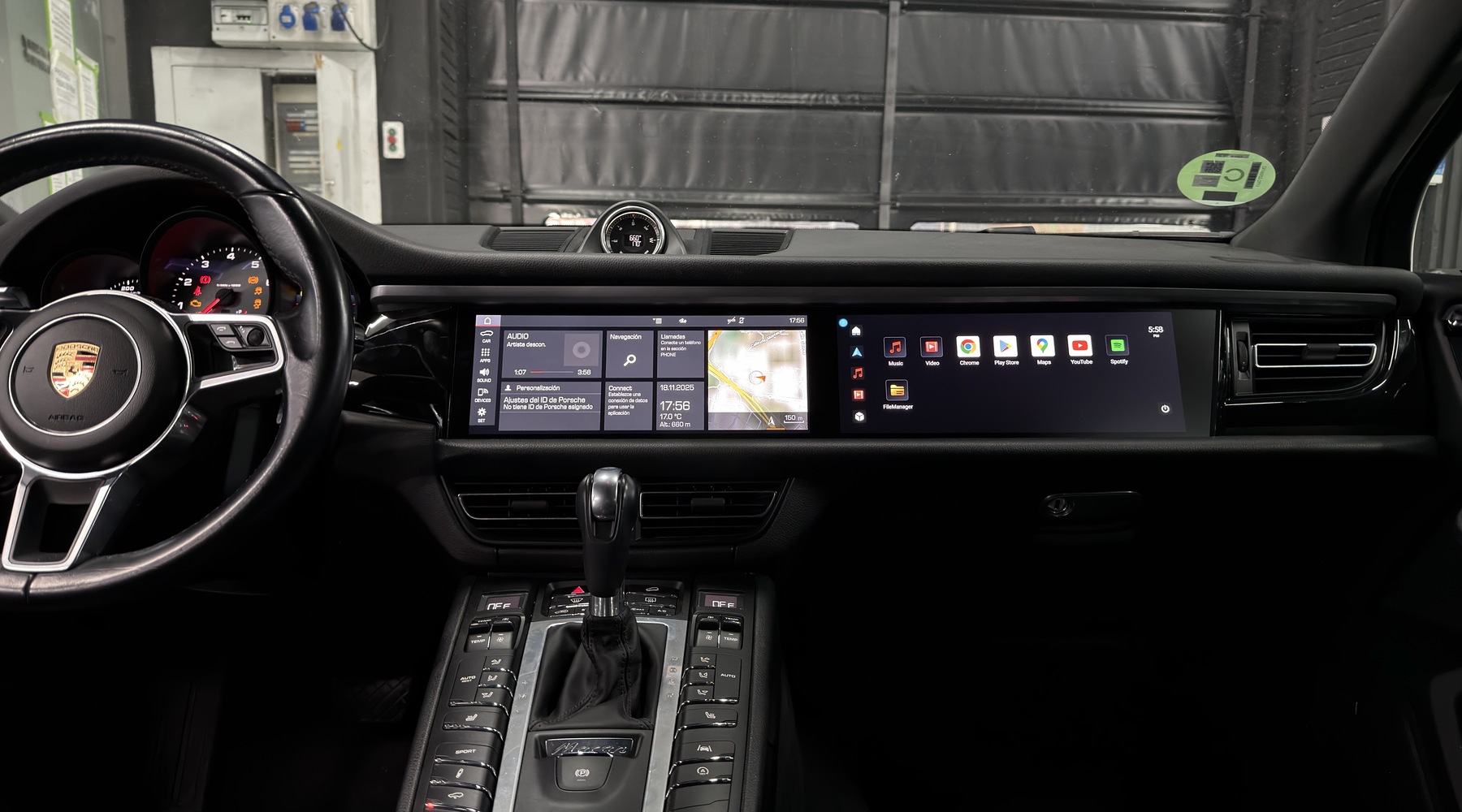 Actualiza tu Porsche Macan PO7A (2019–Presente) con nuestra pantalla infinita dual, un sistema integrado que transforma el salpicadero en una única superficie visual continua.